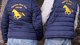 Vi har Berit som syr VÅR logga på västar, jackor, hästtäcken och handdukar. Jubileumsåret sydde hon våra fina scarfar!